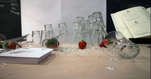 La figura carismatica e l’aspetto performativo dei prolegomeni di Beuys hanno avuto un notevole ascendente sul pubblico e non deve sfuggire, ne La linea d’ombra, la presenza di eventi concepiti da Polidori che coinvolgono gli astanti e scandiscono le giornate, ossia le performance ispirate all’artista tedesco — Fragola/Terremoto. Erdbeeren/Erdbeben — e quelle dedicate agli scritti e le biografie d’artista in forma di Esercizi di lettura di gruppo e “a ostacoli”, oltre alle lezioni, le relazioni e le interviste dal vivo, di Polidori stesso e degli autori che hanno accolto l’invito a collaborare.