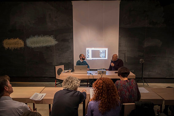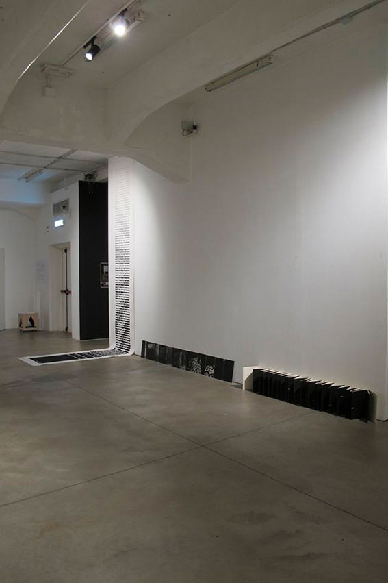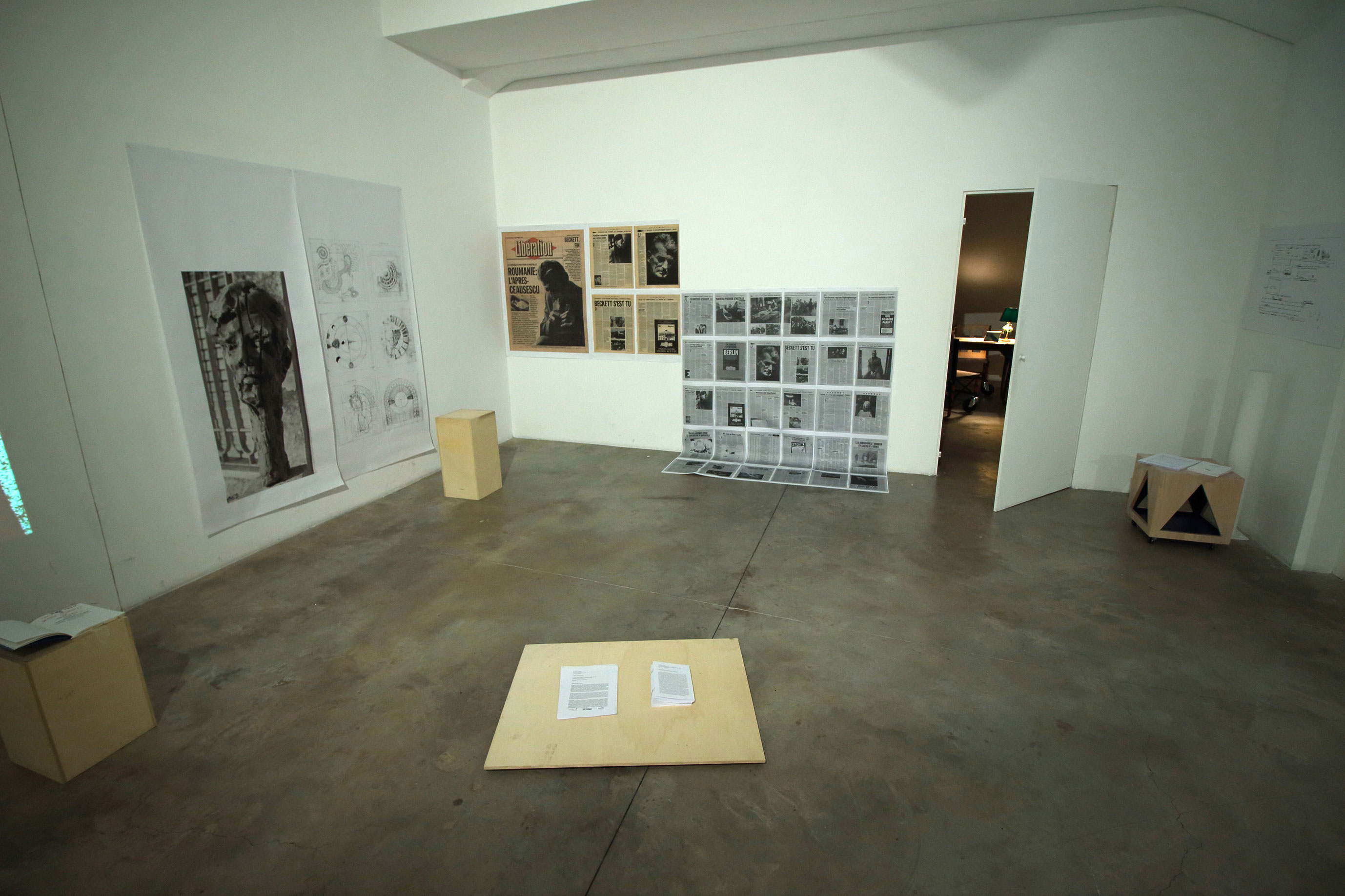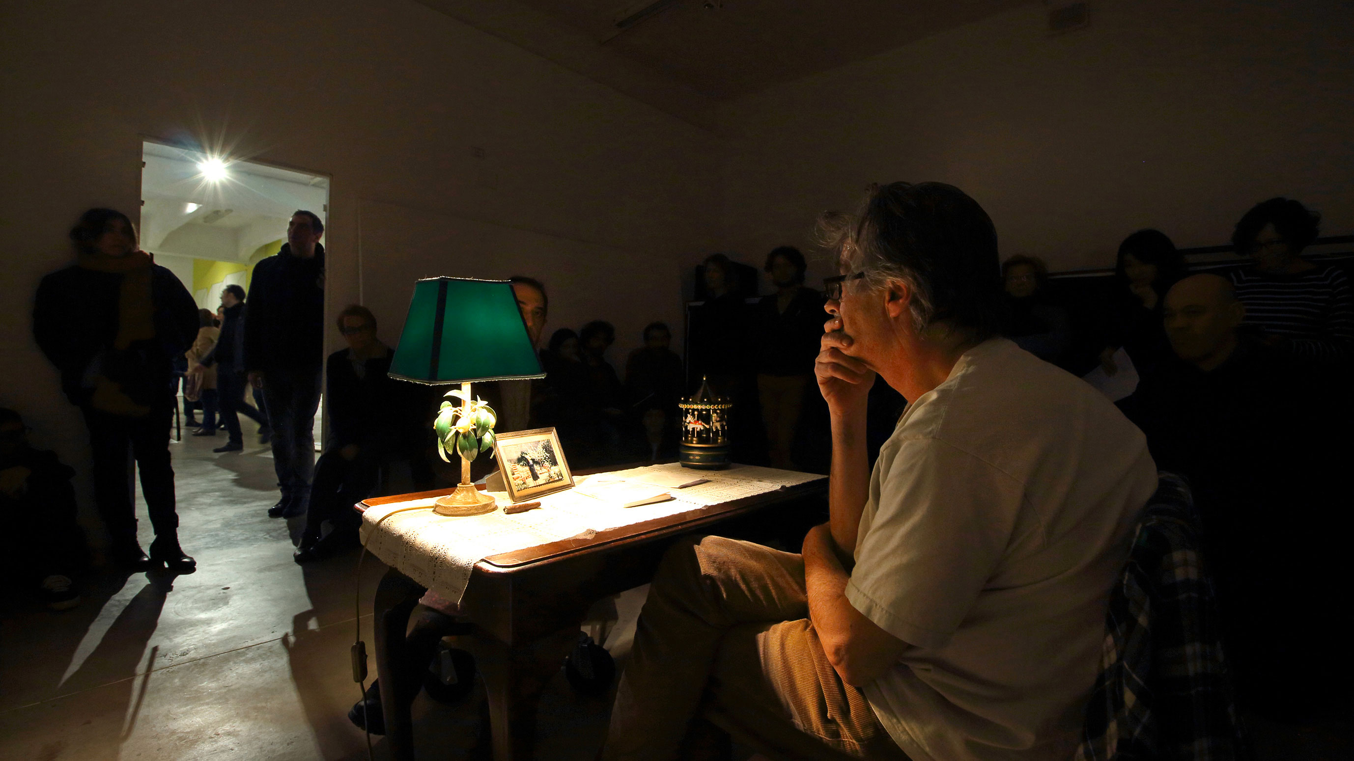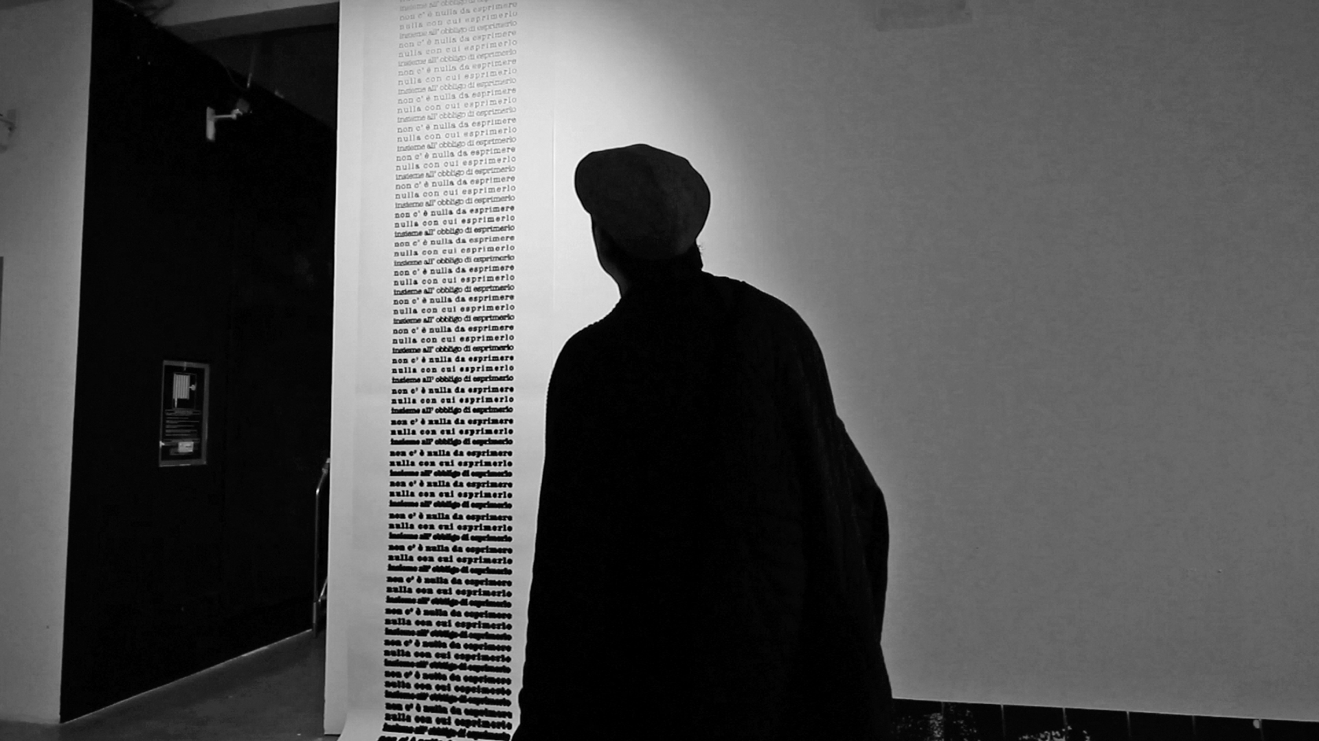 Installazioni e Altri materiali: (1) S. Bordini: Glimpsed, 2019, libro fotografico (2) S. Bordini: Noi bambini, ingrandimento da negativo fotografico tratto dal libro dal libro Glimpsed, 2019 (3) R. De Simone: Cerchiare l’infinito, 1993 (2007), video vhs pal a colori senza sonoro, trasferito su dvd nel 2007, video proiezione con descrizione dell’artista (4) L. Miti, Forse stanotte (operetta inutile), per Voce, Visitatore ed altro, 2011, installazione che precede alla messa in opera (5) M. Pieroni – D. Stiefelmeier, diapositive, documenti d’archivio selezionati da D. Borromeo (6) F. Santoro: La voltapagine, 2018-2019, 7 audio-registrazioni vocali (7) U. Brugnoli: L’ultima giornata di Rosso Malpelo — Riproduzione delle novelle L’ultima giornata (dalla raccolta Per le vie, 1883) e di Rosso Malpelo (dalla raccolta Vita nei Campi, 1880) di Giovanni Verga, 2008, stampa digitale su carta (8) U. Brugnoli: à rebours, 2007, libro modificato (9) claudioadami: Uno dopo l’altro, 1977, sequenza fotografica, stampa fotografica analogica su alluminio (10) claudioadami: Non c’è nulla da esprimere…, 2019, inchiostro su carta (11) A. Lanini: Mondo Arte, 2017-2018, sequenza di 12 immagini, video (12) A. Lanini: Mondo Arte, stampa plotter su carta (13) R. Mandolini: Senza Titolo, 2017/2018/2019, tre cere (14) R. Mandolini: Senza Titolo, 2017, olio su carta (15) R. Mandolini: Senza Titolo, 2017, olio su carta (16) R. Mandolini: Entro un minuto, 2014, video (17) L. Miti in dialogo con P. Polidori: Istruzioni di comportamento, 2018, audio-registrazione (18) P. Polidori: The (more than) 7 deadly sentences of Giuseppe Garrera’s book, 2018-2019, video (19) P. Polidori: La notizia della morte di Beckett, 2019, fotocopie “tazebao” del quotidiano “Libération”, Paris 27/12/89 (20) E. Rosato in dialogo con P. Polidori: Messaggio di forma che veniva da lontano, 2018, audio-registrazione (21) E. Rosato: Ritratto di Paolo (1963) e 6 disegni (1980), stampe su carta.