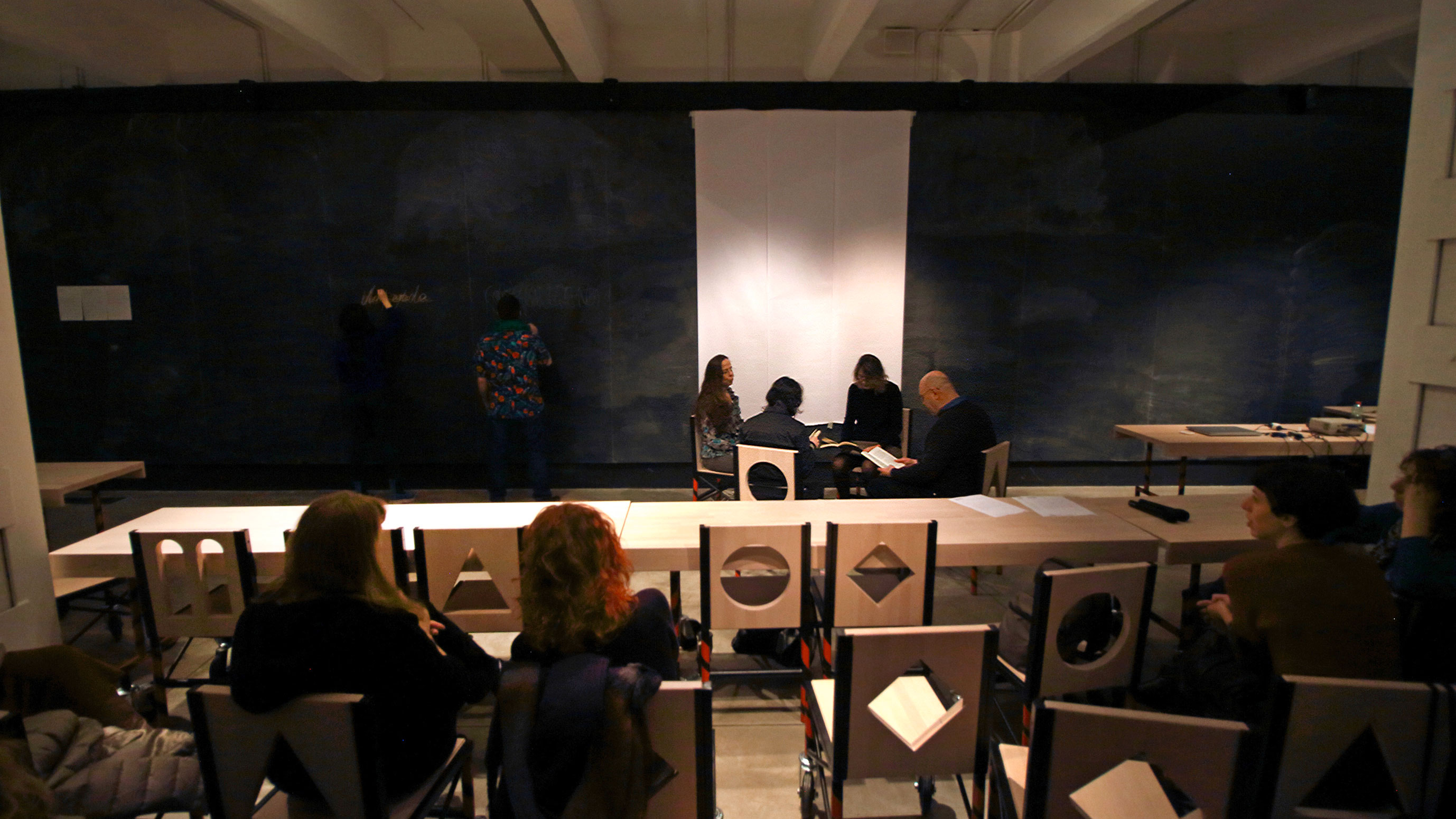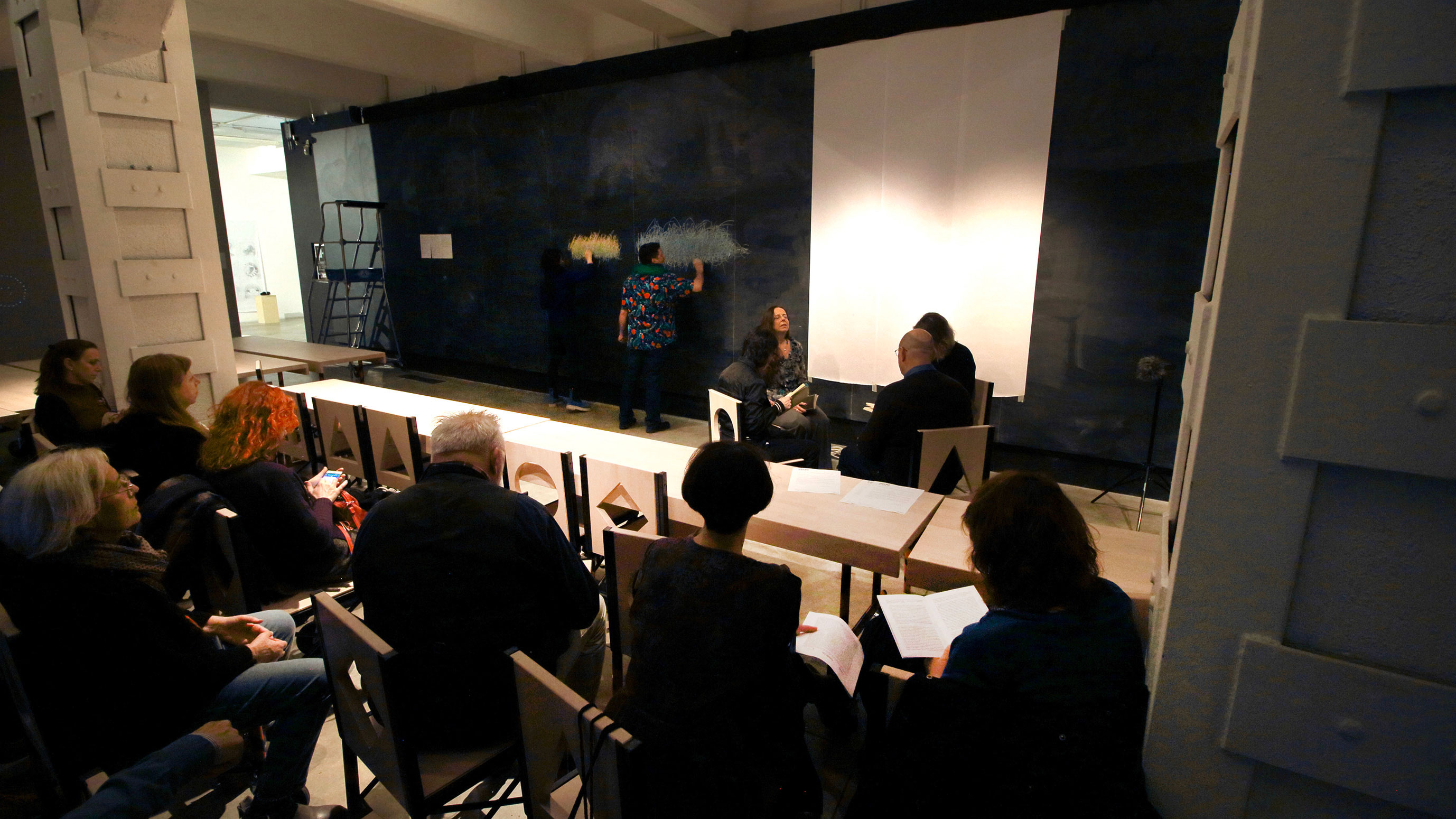 notte, oscurità, attesa del possibile, inconsapevolezza, chi sa e chi non sa, sospetto e allucinazione, ribaltamento, negazione, trauma/segno, lavorare per il segno, inchiostro, liquame, attività estrattiva, carbone, senso e valore, disegno/ombra/scrittura.