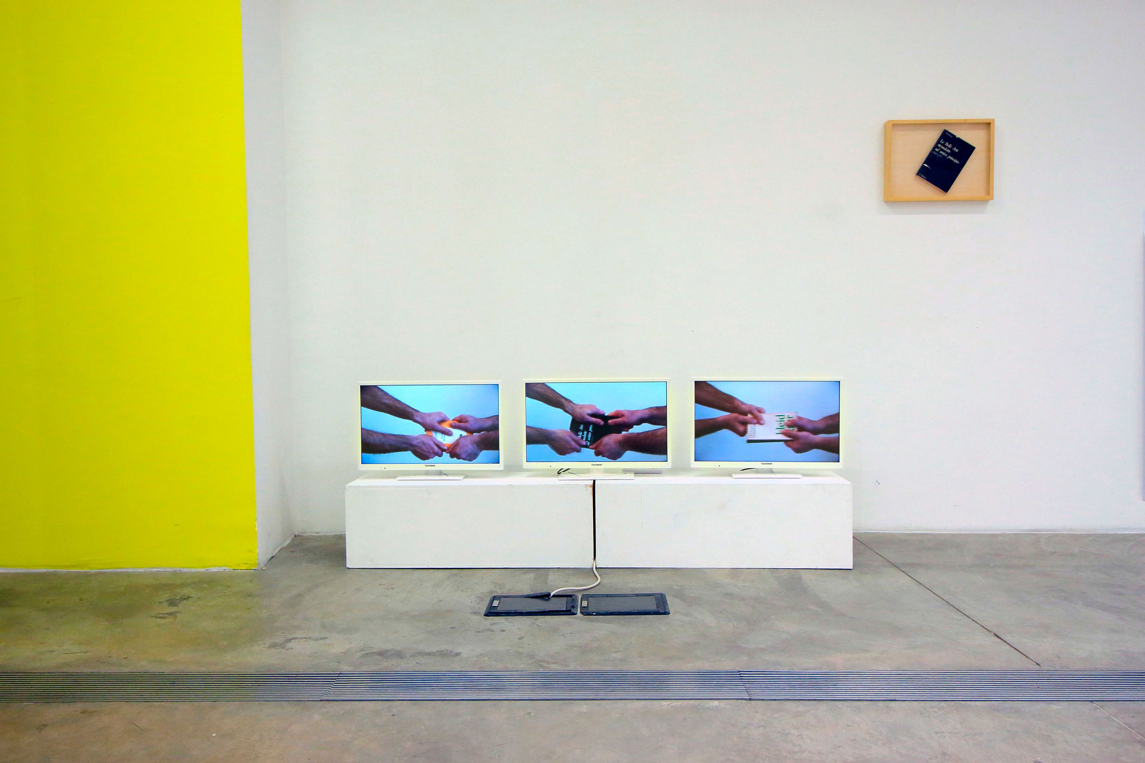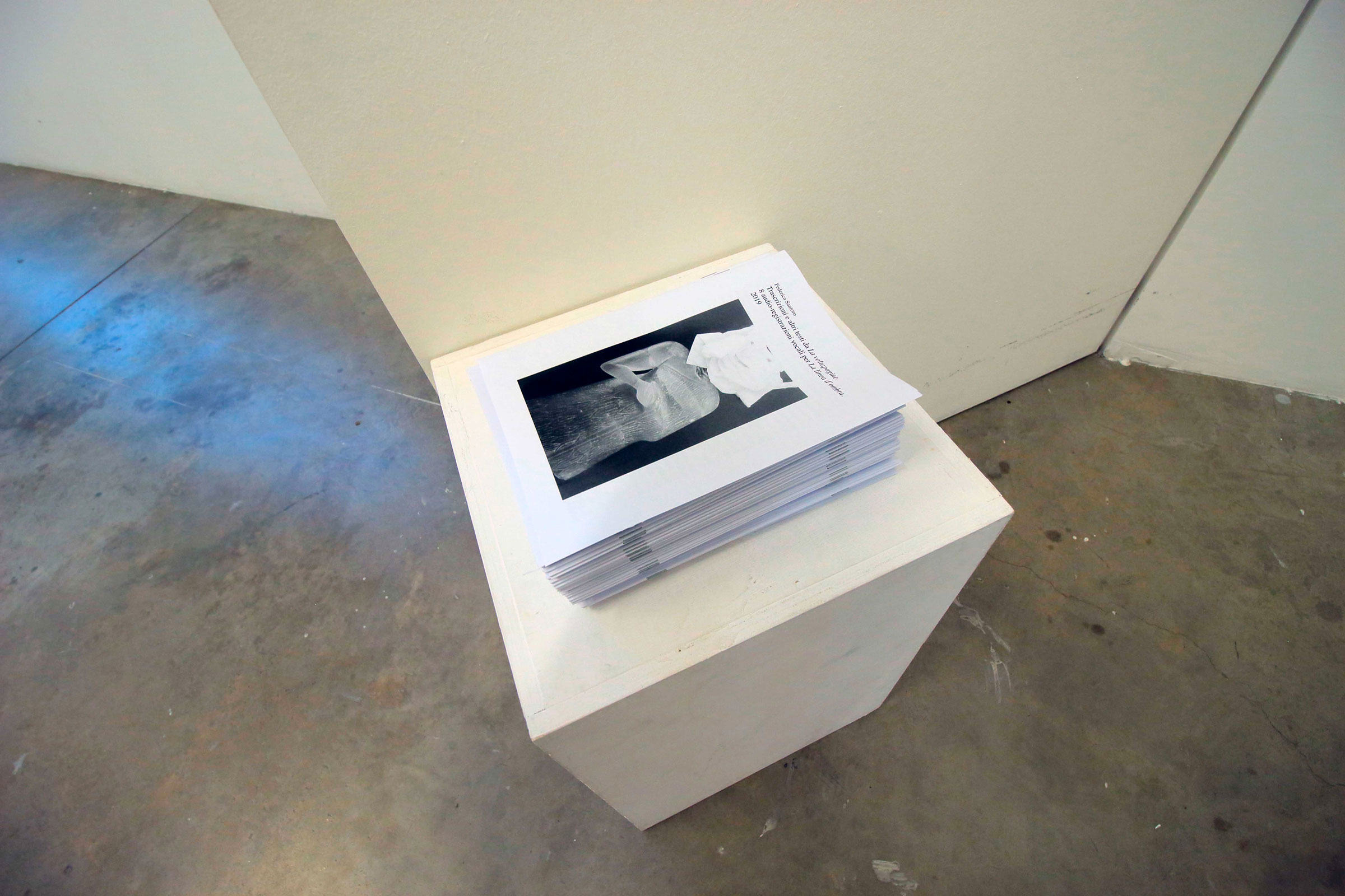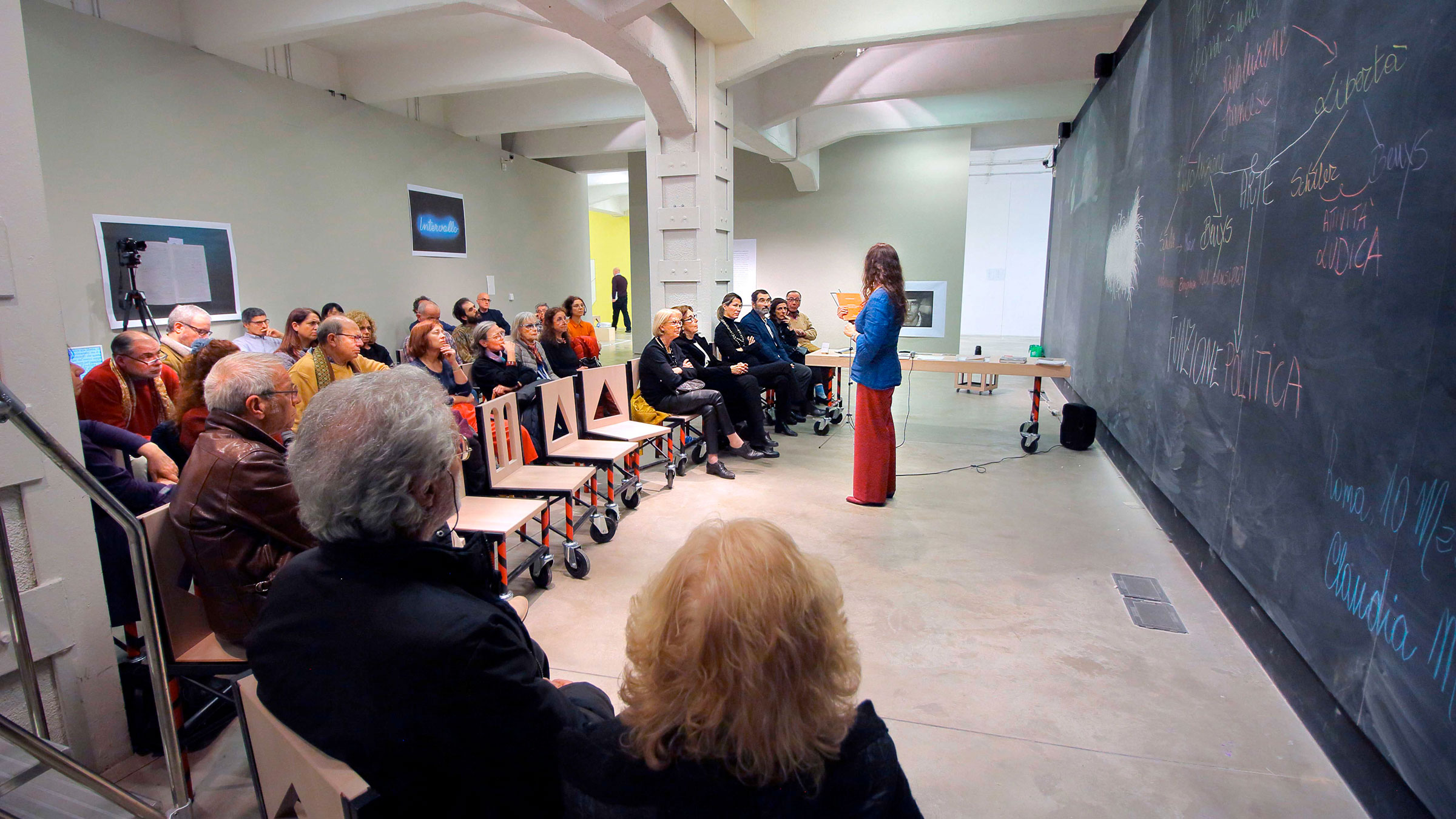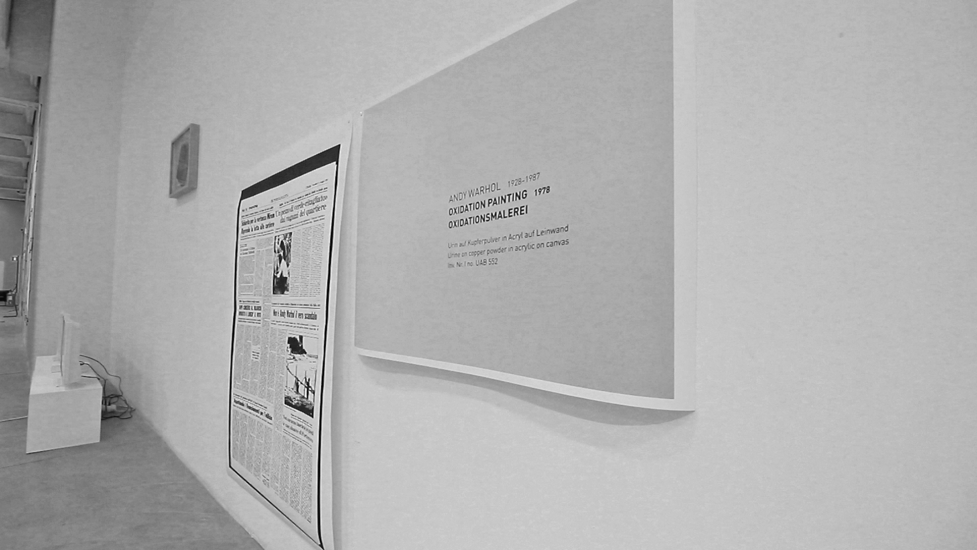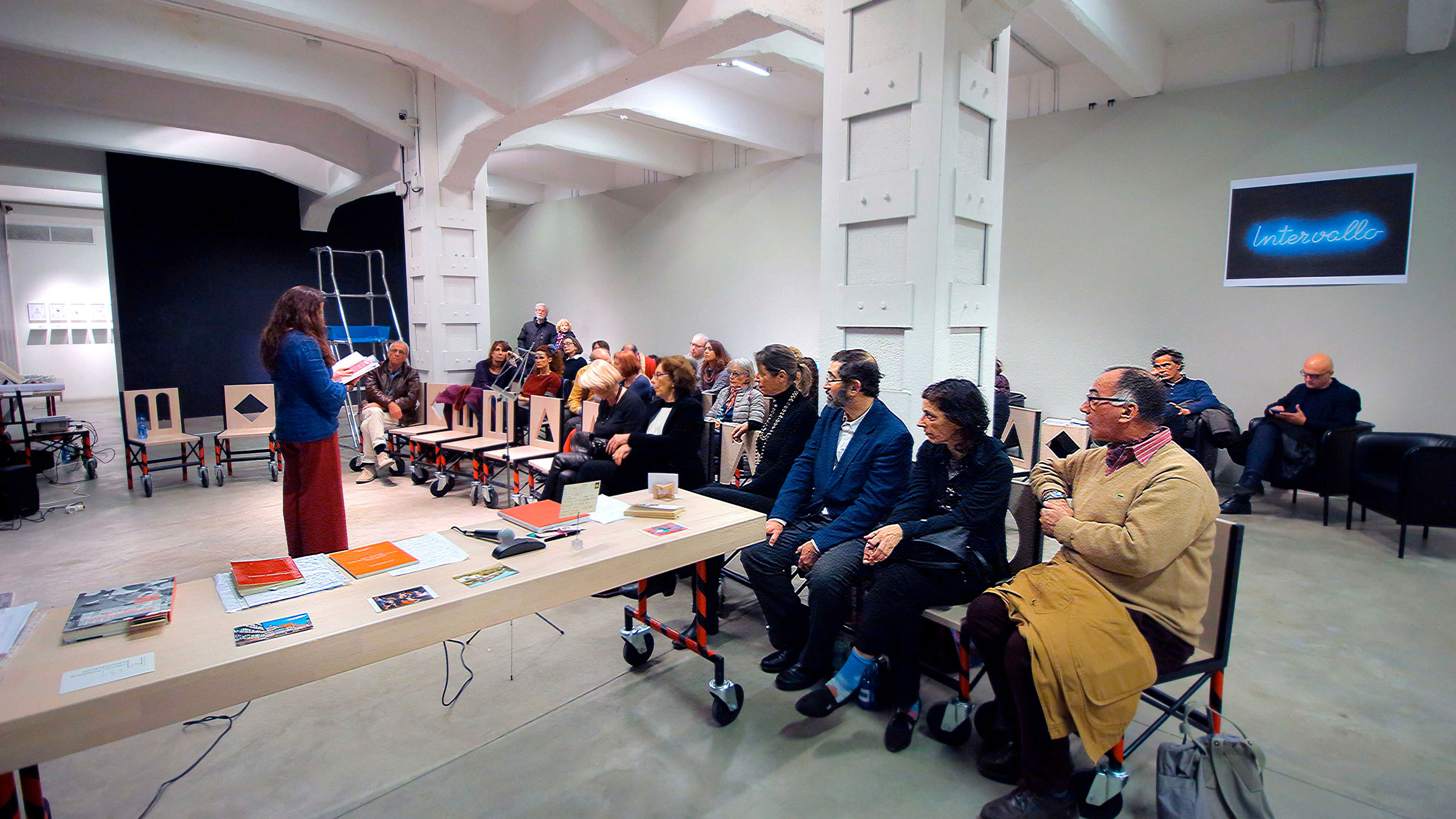 Installazioni e Altri materiali: (1) claudioadami: qual è la parola, 2015, programma sviluppato per scheda raspberry, proiezione (2) P. Cesarini Sforza: Senza titolo, 2018, lastra di piombo su tavola (3) P. Cesarini Sforza: Album, 2019, tecnica mista su album fotografico (4) Claudia Melica e Tianyi Xu: Matita su Schiller, 2019, video, montaggio di fotografie delle pagine del libro L’educazione estetica di Friedrich Schiller sottolineate e annotate a matita da Claudia Melica (5) R. De Simone: Intervallo, 2004, ingrandimento fotografico (6) M. Pieroni – D. Stiefelmeier: documenti d’archivio selezionati da D. Borromeo (7) P. Polidori: Due manifesti tratti da Majakovskij, 2018, stampa su carta (8) M. Zantor: Joseph Beuys is always looking at you, 2018, ingrandimento di fotogramma su carta (9) F. De Filippi: La strada del latte, 2019, video proiezione di una selezione di disegni dal 1974 al 1978 (10) F. De Filippi: Posta inviata nel 1973 agli artisti. (Con una risposta di Sandro Chia), 1973, tre ingrandimenti fotografici (11) M. Folci: Concerto transumante per flatus vocis, 2005, video, ingrandimenti di fotogrammi, testo stampato (12) P. Polidori: Prove di trazione, 2018, tre video documentazioni di azioni operate su tre volumi: Charles Batteux, Le Belle Arti ricondotte ad un unico principio, Bologna 1983; Max Horkheimer e Theodor Adorno, Dialettica dell’illuminismo, Torino 1966; Martin Heidegger, Sentieri interrotti, Firenze 1984 (13) P. Polidori: Non è Andy Warhol il vero scandalo, pagina de L’Unità dell’11 maggio 1977, ingrandimento fotografico + Didascalia di Andy Warhol, Oxidation Painting 1978 dal Museo Brandhorst di Monaco di Baviera, ingrandimento fotografico (14) F. Santoro: La voltapagine, 2018-2019, 8 audio-registrazioni vocali: Immobile (Beckett); I cinque secondi di Beckett; Inizio de La linea; L’educazione sentimentale Volume 1; L’educazione sentimentale Volume 2 (breve); L’educazione sentimentale Volume 2; Uno a cento; L’ultima pagina di Altrove di Michaux (15) F. Santoro: Trascrizione dell’Educazione sentimentale, 2019, stampa su carta (16) D. Villa Zorn: 7 collage: On the brink of…, 2015; Temptation of Dictatorship, 2012; The narrow path, 2013; Shipwreck, 2012; Revelation, 2018; The Cannibal Rome Epiphany, 2013; com’è difficile tornare a casa, 2014; ingrandimenti fotografici.
