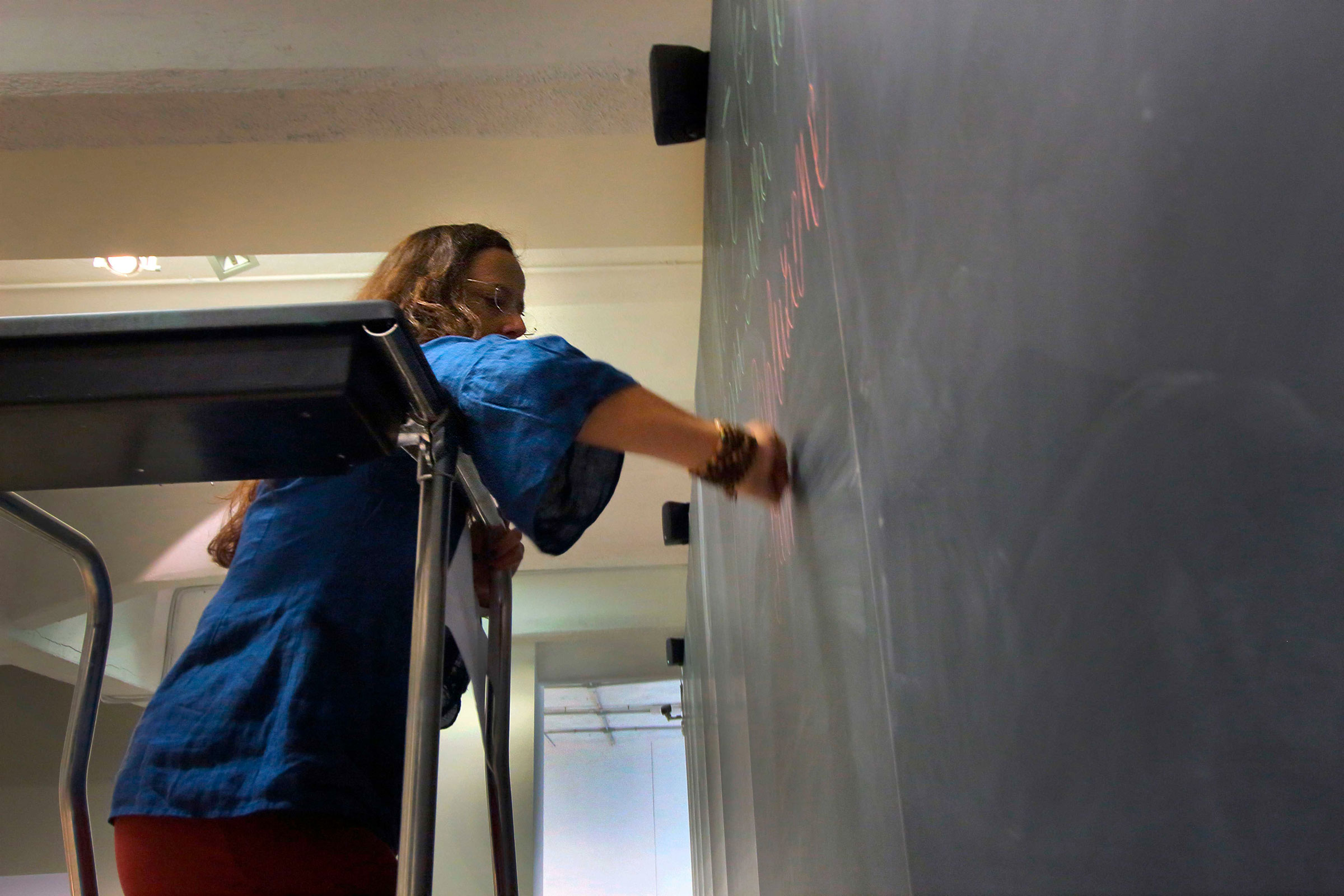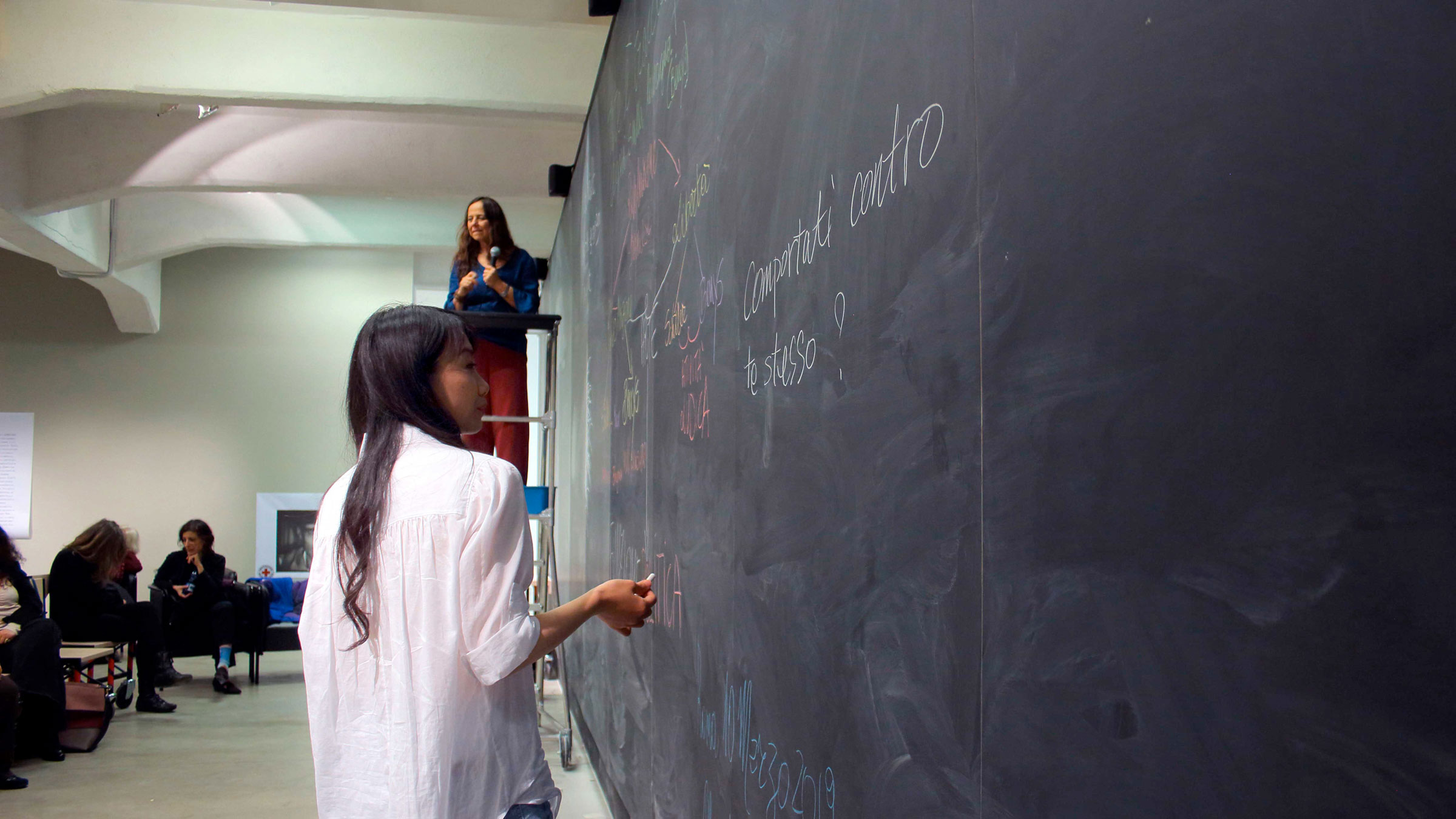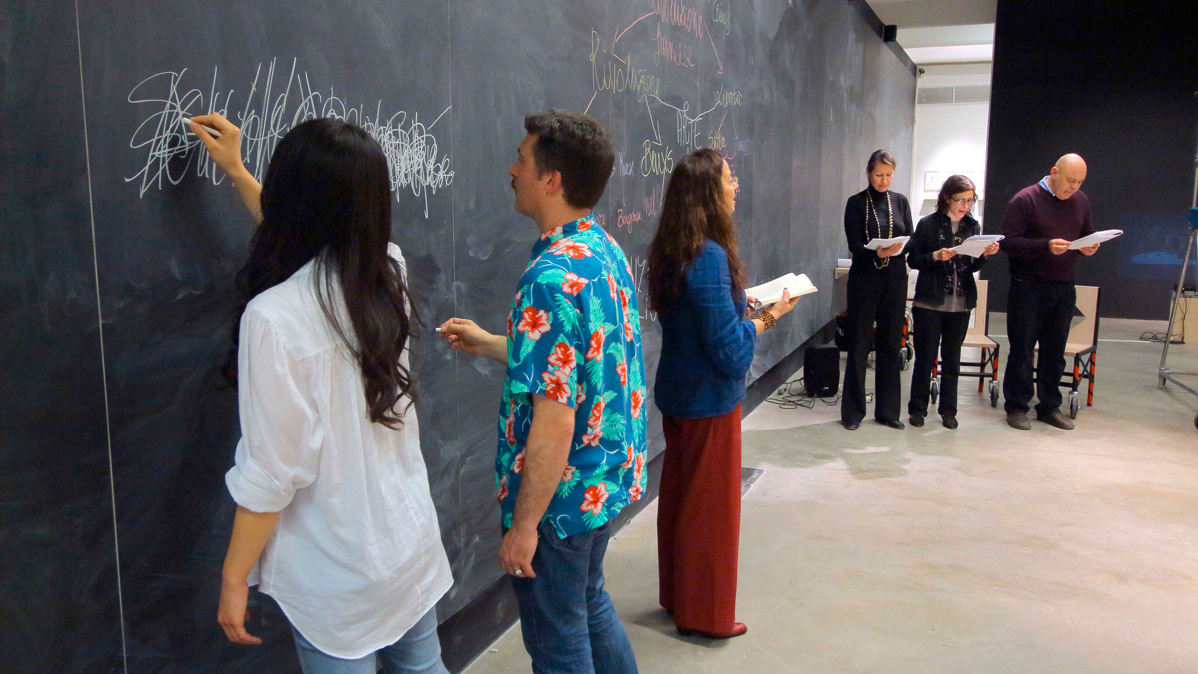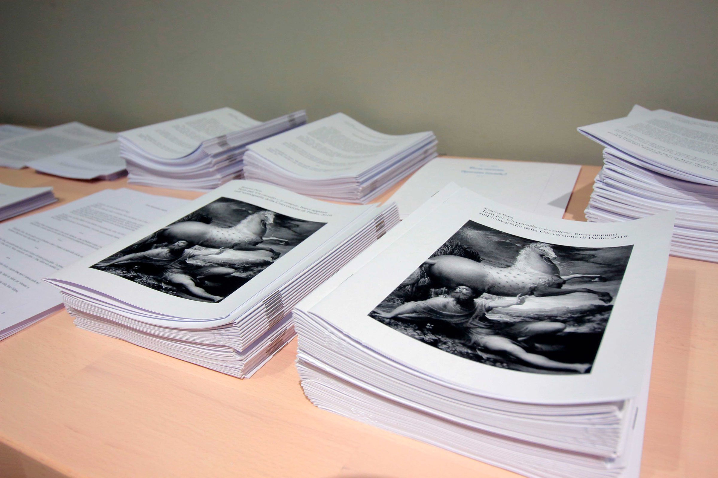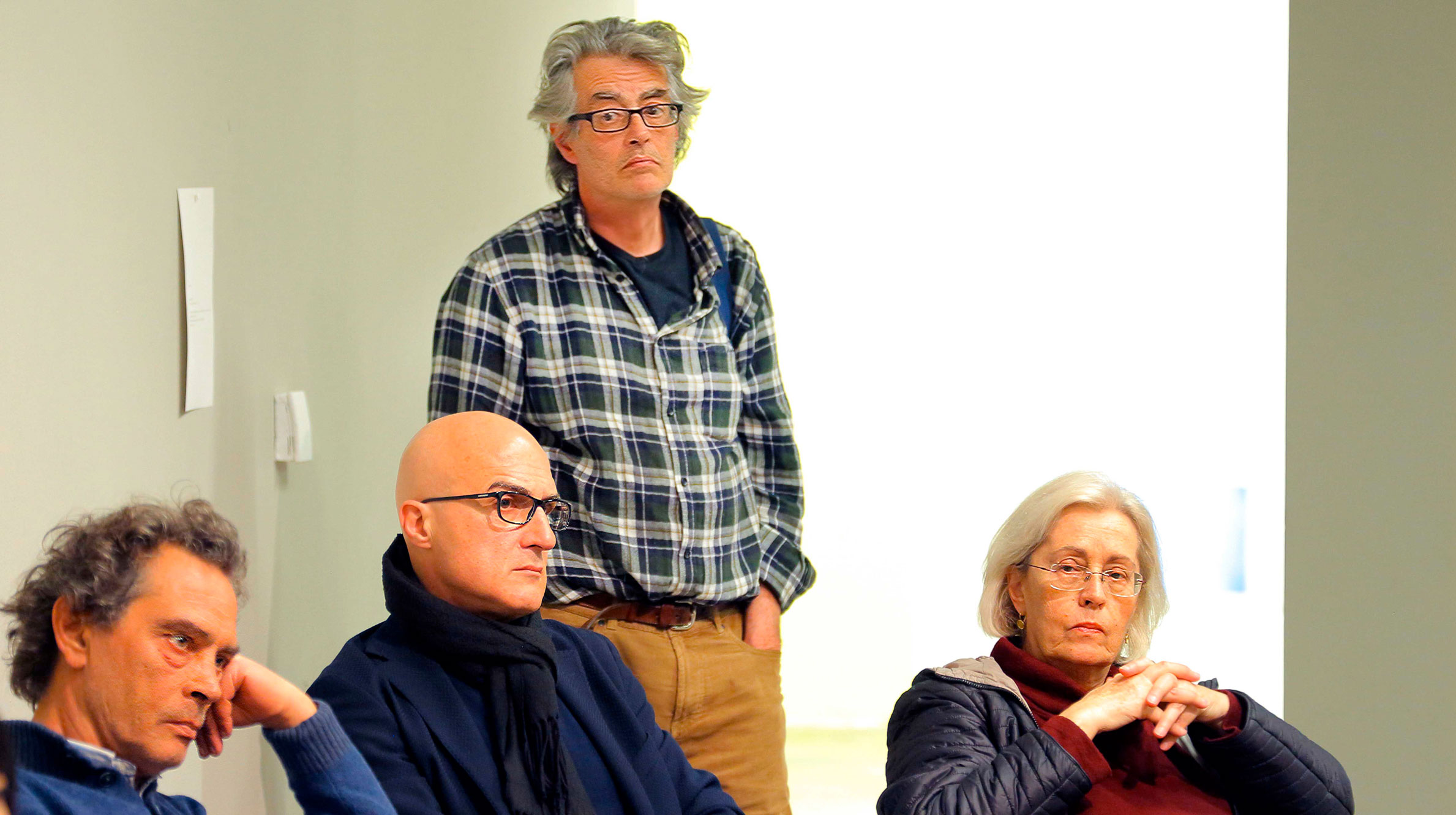 Installazioni e Altri materiali: (1) claudioadami: qual è la parola, 2015, programma sviluppato per scheda raspberry, proiezione (2) P. Cesarini Sforza: Senza titolo, 2018, lastra di piombo su tavola (3) P. Cesarini Sforza: Album, 2019, tecnica mista su album fotografico (4) Claudia Melica e Tianyi Xu: Matita su Schiller, 2019, video, montaggio di fotografie delle pagine del libro L’educazione estetica di Friedrich Schiller sottolineate e annotate a matita da Claudia Melica (5) R. De Simone: Intervallo, 2004, ingrandimento fotografico (6) M. Pieroni – D. Stiefelmeier: documenti d’archivio selezionati da D. Borromeo (7) P. Polidori: Due manifesti tratti da Majakovskij, 2018, stampa su carta (8) M. Zantor: Joseph Beuys is always looking at you, 2018, ingrandimento di fotogramma su carta (9) F. De Filippi: La strada del latte, 2019, video proiezione di una selezione di disegni dal 1974 al 1978 (10) F. De Filippi: Posta inviata nel 1973 agli artisti. (Con una risposta di Sandro Chia), 1973, tre ingrandimenti fotografici (11) M. Folci: Concerto transumante per flatus vocis, 2005, video, ingrandimenti di fotogrammi, testo stampato (12) P. Polidori: Prove di trazione, 2018, tre video documentazioni di azioni operate su tre volumi: Charles Batteux, Le Belle Arti ricondotte ad un unico principio, Bologna 1983; Max Horkheimer e Theodor Adorno, Dialettica dell’illuminismo, Torino 1966; Martin Heidegger, Sentieri interrotti, Firenze 1984 (13) P. Polidori: Non è Andy Warhol il vero scandalo, pagina de L’Unità dell’11 maggio 1977, ingrandimento fotografico + Didascalia di Andy Warhol, Oxidation Painting 1978 dal Museo Brandhorst di Monaco di Baviera, ingrandimento fotografico (14) F. Santoro: La voltapagine, 2018-2019, 8 audio-registrazioni vocali: Immobile (Beckett); I cinque secondi di Beckett; Inizio de La linea; L’educazione sentimentale Volume 1; L’educazione sentimentale Volume 2 (breve); L’educazione sentimentale Volume 2; Uno a cento; L’ultima pagina di Altrove di Michaux (15) F. Santoro: Trascrizione dell’Educazione sentimentale, 2019, stampa su carta (16) D. Villa Zorn: 7 collage: On the brink of…, 2015; Temptation of Dictatorship, 2012; The narrow path, 2013; Shipwreck, 2012; Revelation, 2018; The Cannibal Rome Epiphany, 2013; com’è difficile tornare a casa, 2014; ingrandimenti fotografici.