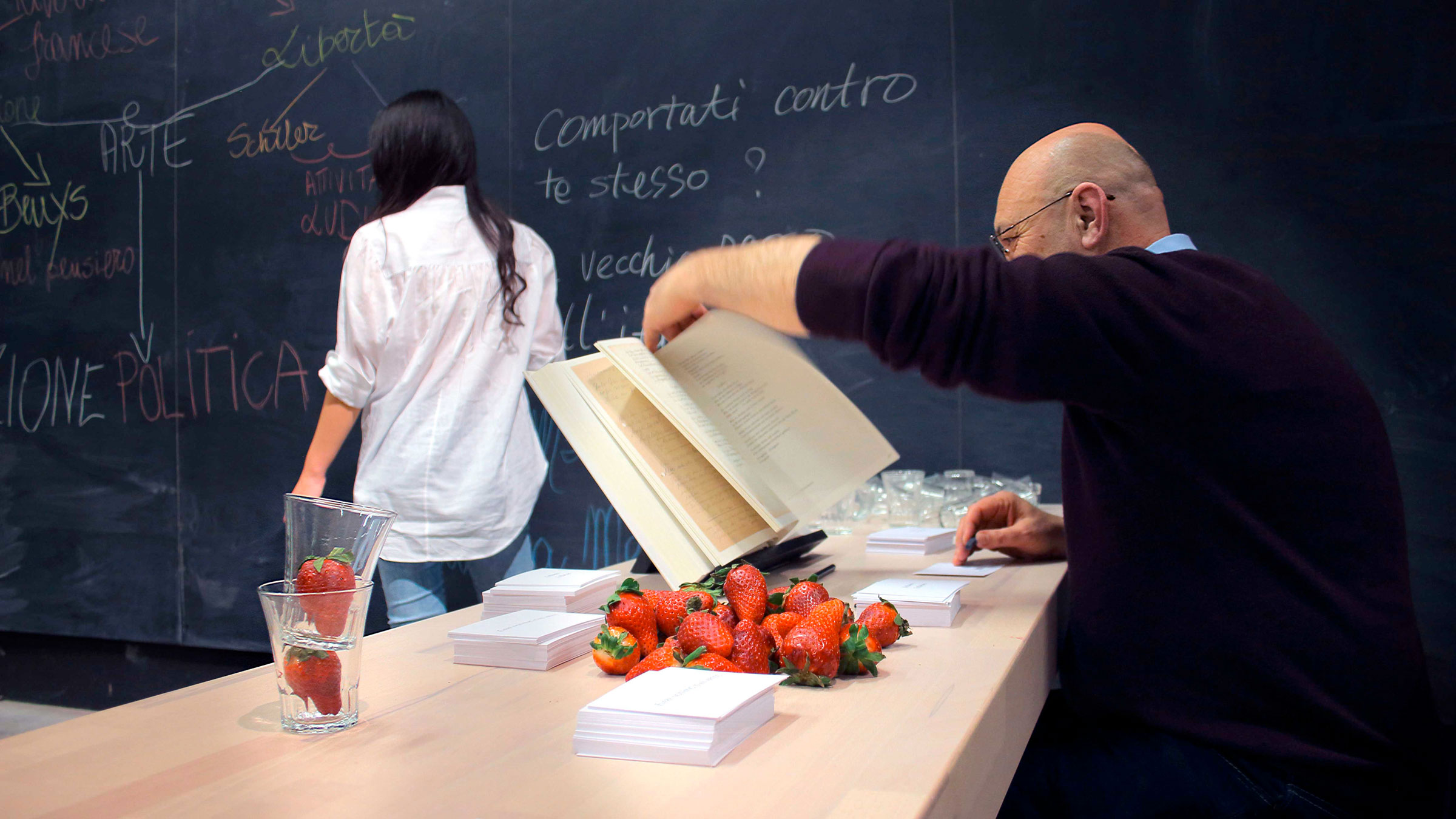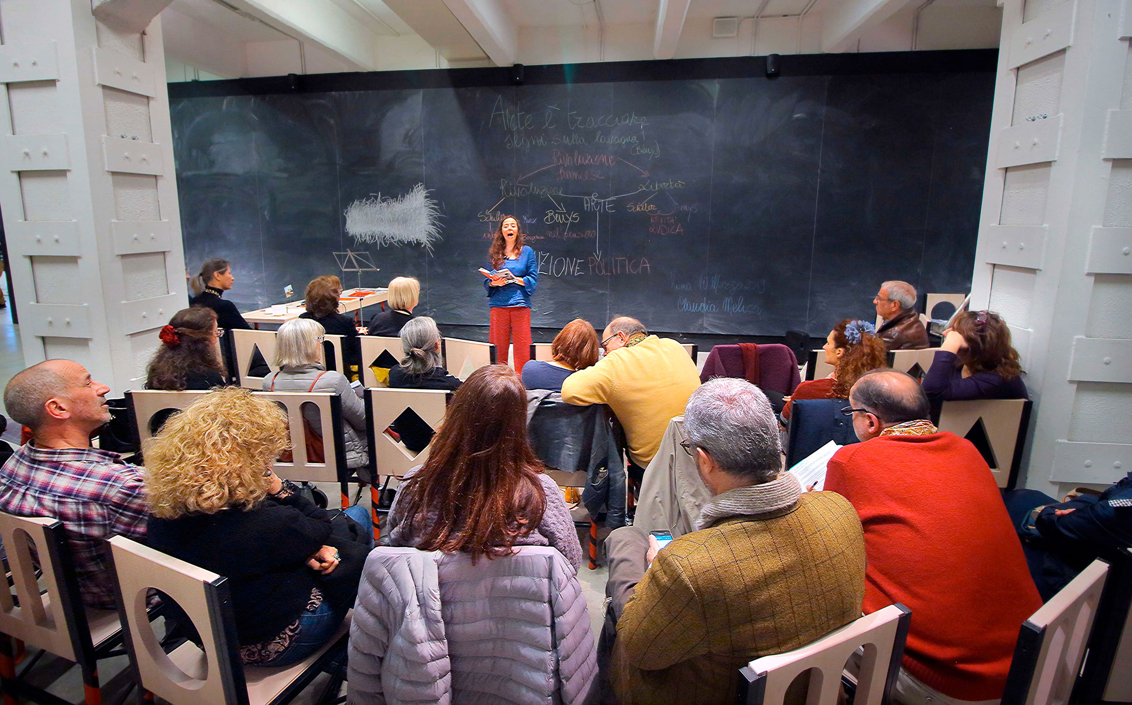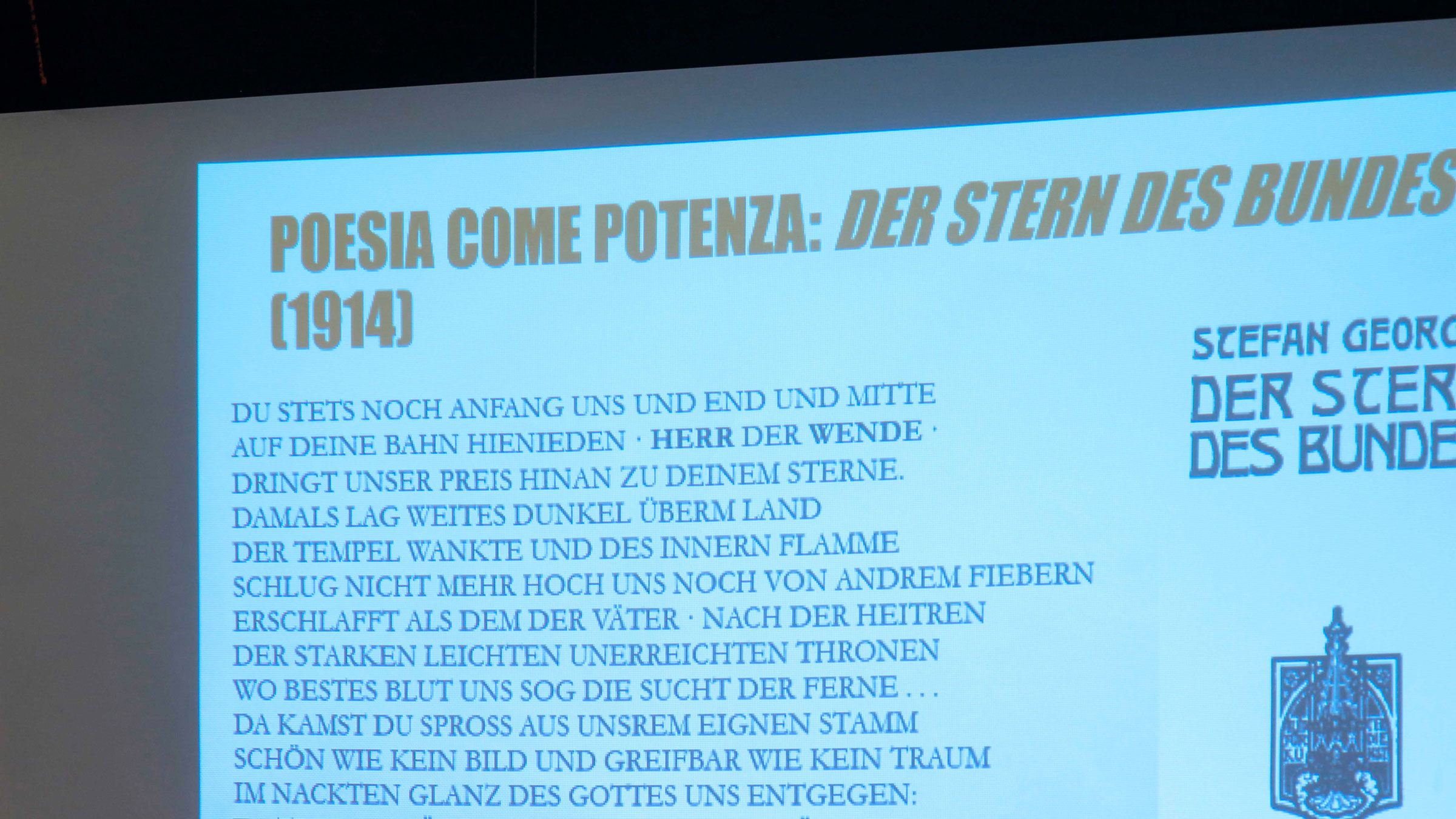 Interventi: (1) C. Melica con D. Borromeo, P. Polidori, F. Santoro, e la partecipazione di Tianyi Xu e Daniele Villa Zorn: Esercizi di lettura su Die Künstler/Gli artisti di F. Schiller. (2) C. Melica: Libertà e rivoluzione. (3) L. Miti, P. Polidori, T. Xu, con una nota introduttiva di D. Borromeo: n domande a Luca Miti, con n+1 risposte. (4) G. Guerra: La parola e l’immagine. Stefan George, poeta tedesco (1868-1933). (5) D. Borromeo: Al limite della linea d’ombra. (6) P. Polidori con C. Melica, T. Xu, G. Guerra, D. Borromeo, et al.: Fragola – Terremoto / Erdbeeren – Erdbeben. Scelta di brevi testi provenienti dai disegni di Beuys tradotti all’impronta, azione.