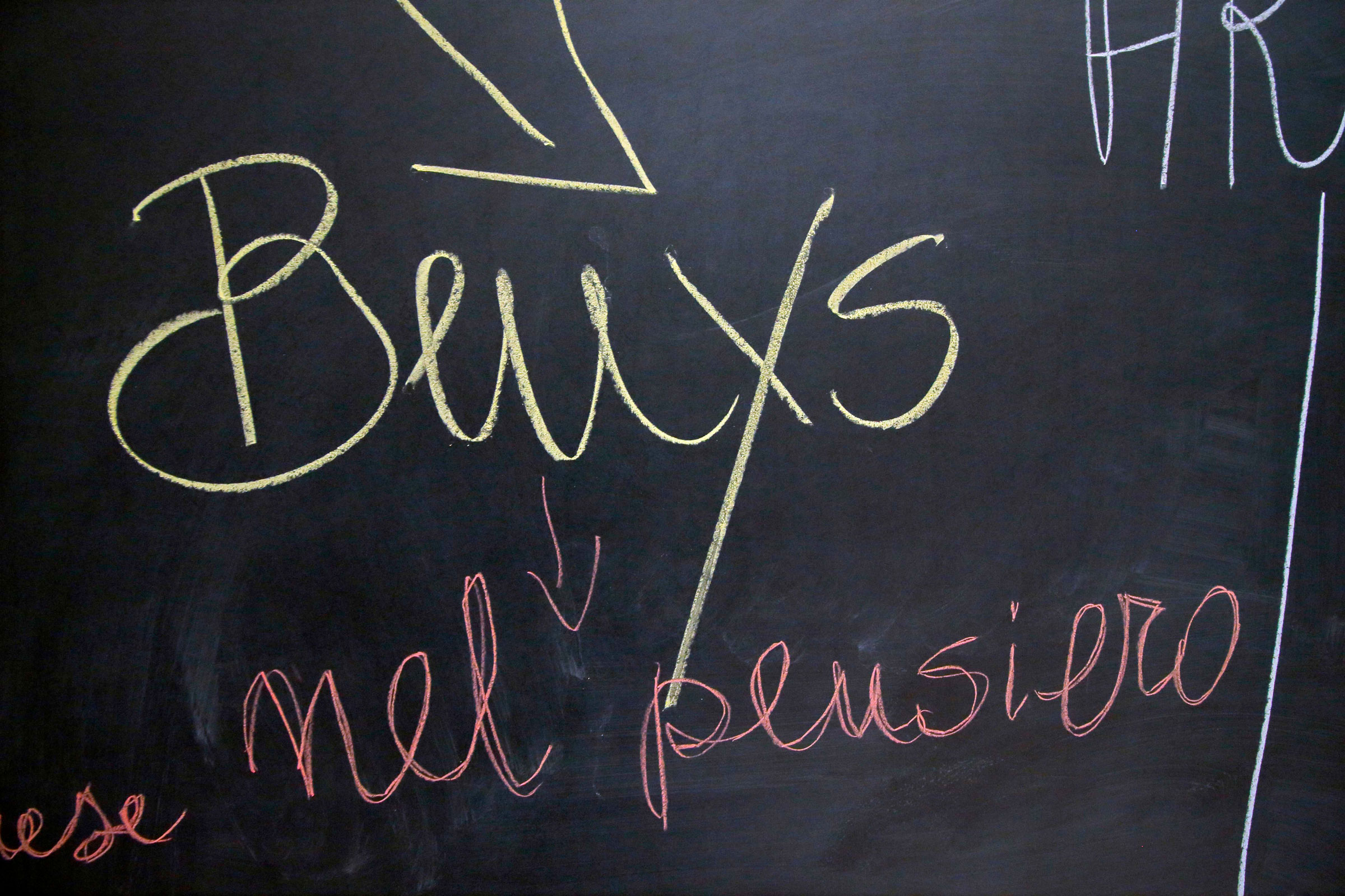 ‘e’, spazio/baratro della congiunzione: arte e vita, bios e zoe, polis e poesia, progetto e biografia, opera e nulla, lingua e mondo; tout se tient, dialettica infinita, intenzione, desiderio, scommessa, estinzione come soluzione impossibile dell’arte.