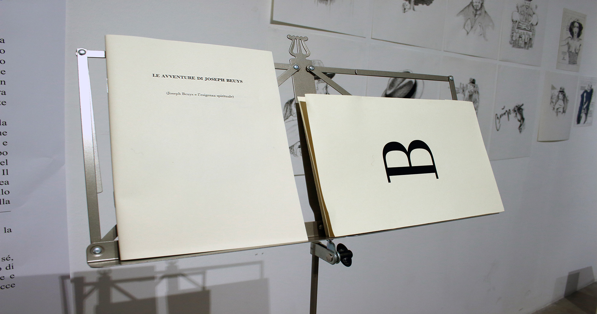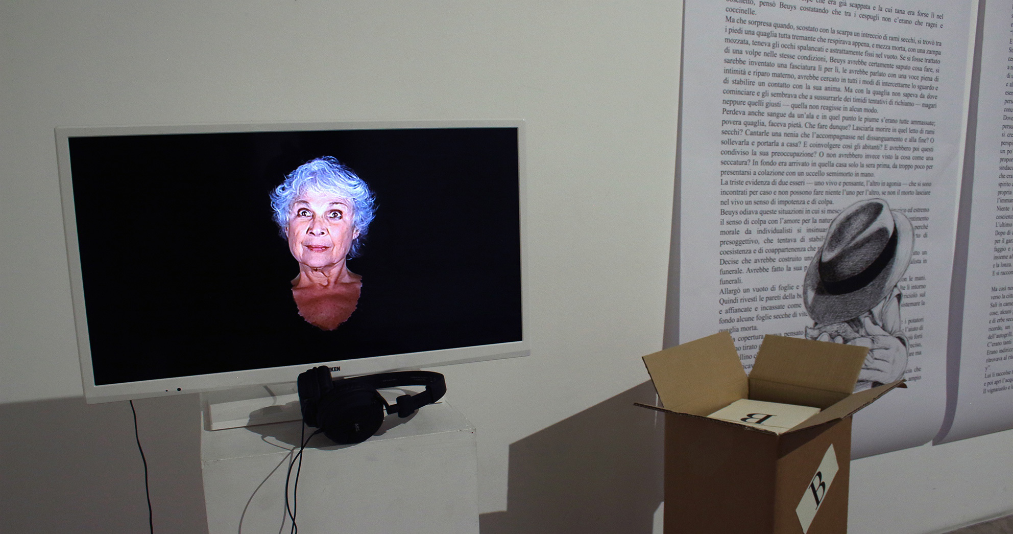 Installazioni e Altri materiali: (1) P. Cesarini Sforza: Little boxes, 2015, installazione, piombo e sale (2) L. Palmieri: Il contributo della donna al museo sbagliato, 2018, testo della lectio magistralis al Macro Asilo (3) L. Palmieri e P. Polidori: Discorso rallentato, 2019, audio di una lezione di L. Palmieri modificato da P. Polidori (4) M. Pieroni – D. Stiefelmeier, diapositive, documenti d’archivio selezionati da D. Borromeo (5) B. Peria in collaborazione con P. Polidori: Un cavallo c’è sempre – Lessico iconografico sul tema della Conversione di Paolo, 2019, video e testo (6) P. Polidori: Mitologie beuysiane II, Il vestito di Mönchengladbach, dettagliatamente, 2018, video (7) M. Zantor: Joseph Beuys is looking at you, 2018, video (8) F. De Filippi: Social Barocco, 1977, dipinto su legno, dittico (9) F. De Filippi: Pittori siate allegri e altri testi (10) F. De Filippi con P. Polidori: La strada del latte (è un lapsus metalinguistico), 2018/19, libretto (11) L. Miti: L’olio sprecato e altri testi (12) M. Piccini: disegni per Le avventure di JB, 2008, matita su carta (13) M. Piccini con P. Polidori: Come nasce una pin up, 2019, audio (14) C. Pietroiusti, F. Hornung: 9 poesie tradotte in tedesco, 1975-2015 circ, 2019, libretto a stampa, ed. numerata (15) C. Pietroiusti: Quaderno blu, 2000, diapositive (16) P. Polidori: Caro (lettera di Penna a Pasolini), 2014, matita su carta (17) P. Polidori: Mitologie beuysiane I (B, Le avventure di JB, 2008, libretto a stampa, video; Mitologie beuysiane IV, 2018, testo, distribuzione di cartoncini (18) E. Rosato: Ritratto di Martina, 1992, scultura, terracotta (19) E. Rosato: Ritratto di Sara, 1976, scultura, terracotta (20) E. Rosato: Metopa, 1983, terracotta (21) M. Sartori: Studio n. 10 in Si minore opera n. 25 Omaggio a Chopin, 2010, video.