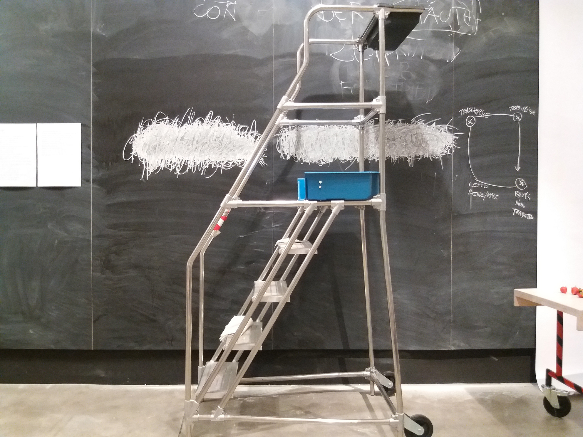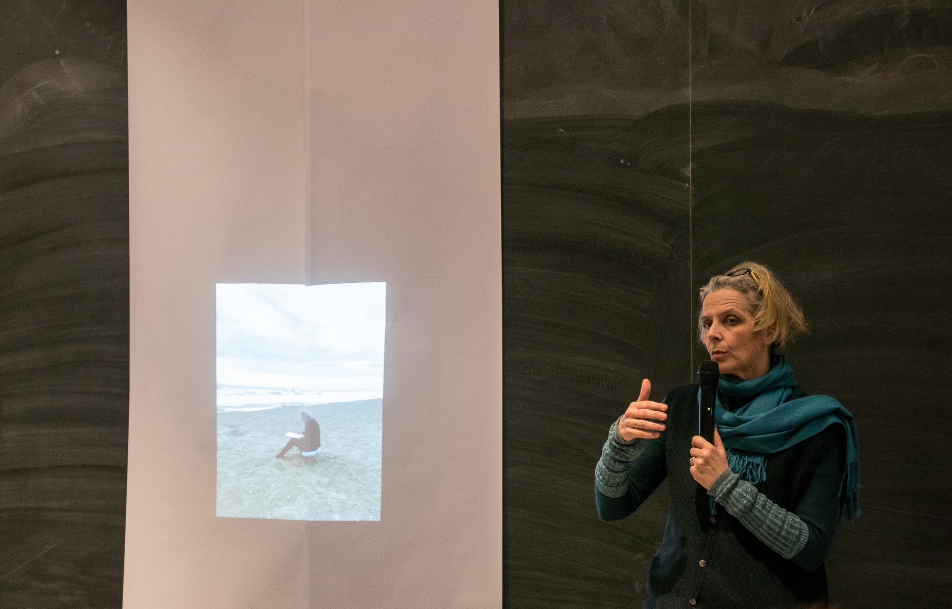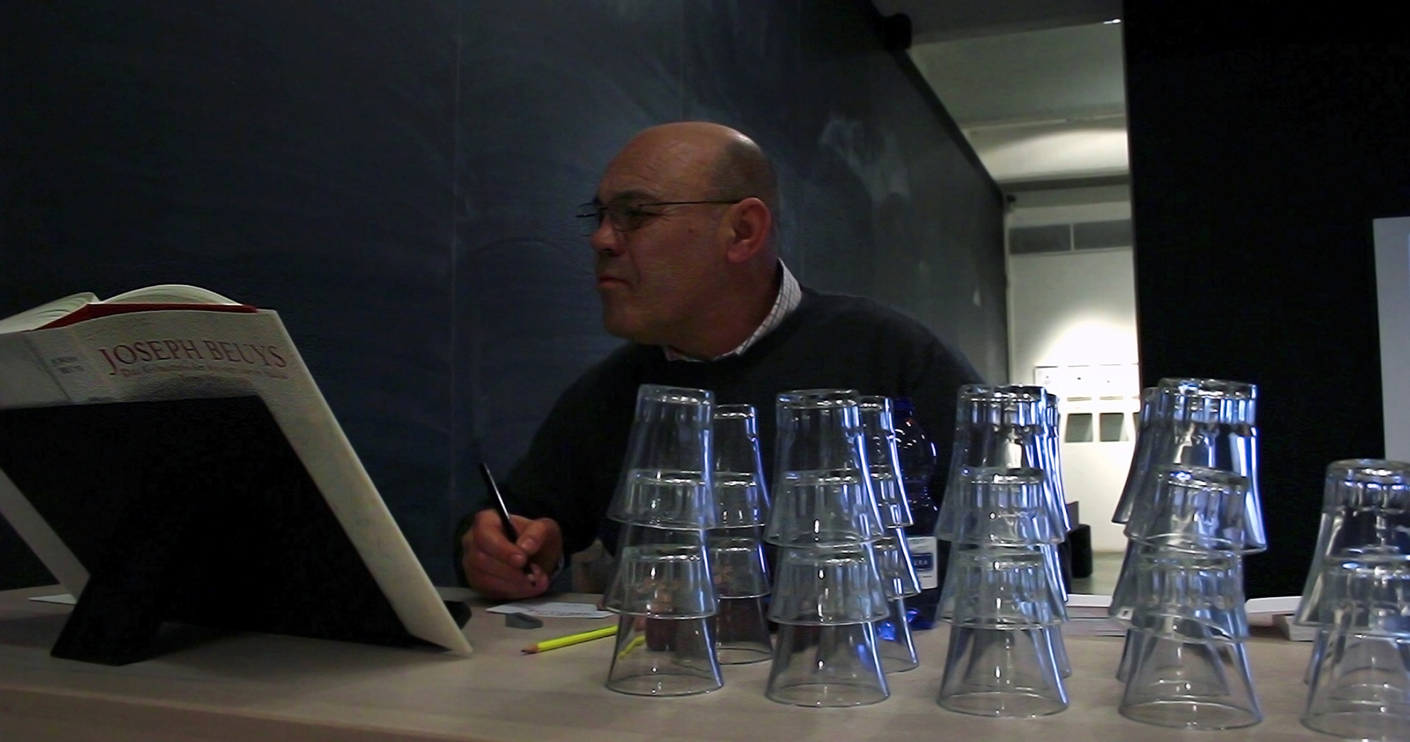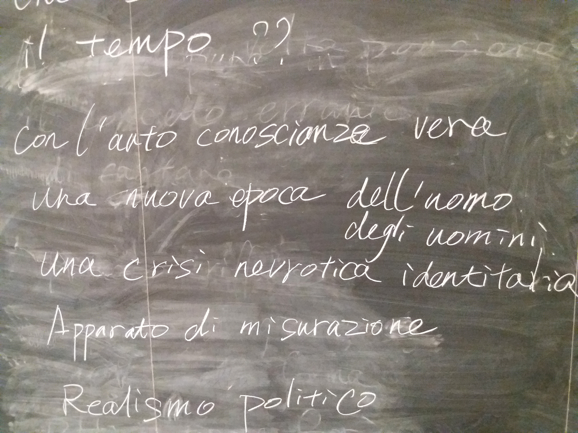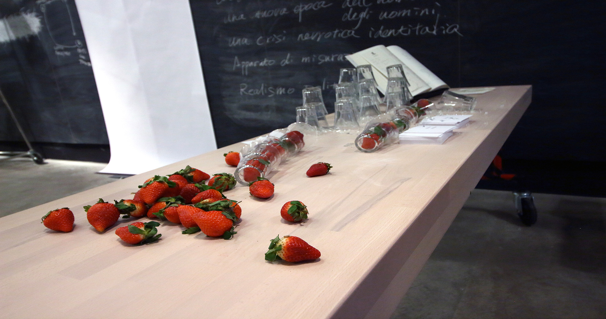 Interventi: (1) D. Borromeo, C. Melica, P. Polidori, F. Santoro: Esercizi di lettura. Scelta di scritti biografici e teorici di artisti. Con la partecipazione di Tianyi Xu e Daniele Villa Zorn. (2) P. Polidori: Introduzione a La linea d’ombra. Il personaggio Beuys. Ipotesi narrativa: ogni persona è un artista, ogni artista è un personaggio, ogni personaggio è una pin up; l’arte come elaborazione teatrale di sé. Tra Joseph Beuys e Vettor Pisani. (3) C. Pietroiusti con F. Hornung, G. Garrera, C. Melica, F. Santoro: Non si finisce mai di rimuovere. Lettura e discussione sulle parole rimosse nelle poesie di Cesare Pietroiusti tradotte in tedesco da Frank Hornung. (4) M. Sartori, Presentazione di due opere sonore: Il suono della lingua (2008); Preghiera a sua madre perché muoia (2016). Ovvero: sulle modalità di materializzazione, traduzione e ricomposizione della lingua a partire da un dato testo poetico. (5) P. Polidori con C. Melica, T. Xu, D. Borromeo et al.: Lettura d’attesa / Erdbeeren – Erdbeben. Scelta di brevi testi provenienti dai disegni di Beuys tradotti all’impronta e trascritti alla lavagna, azione.