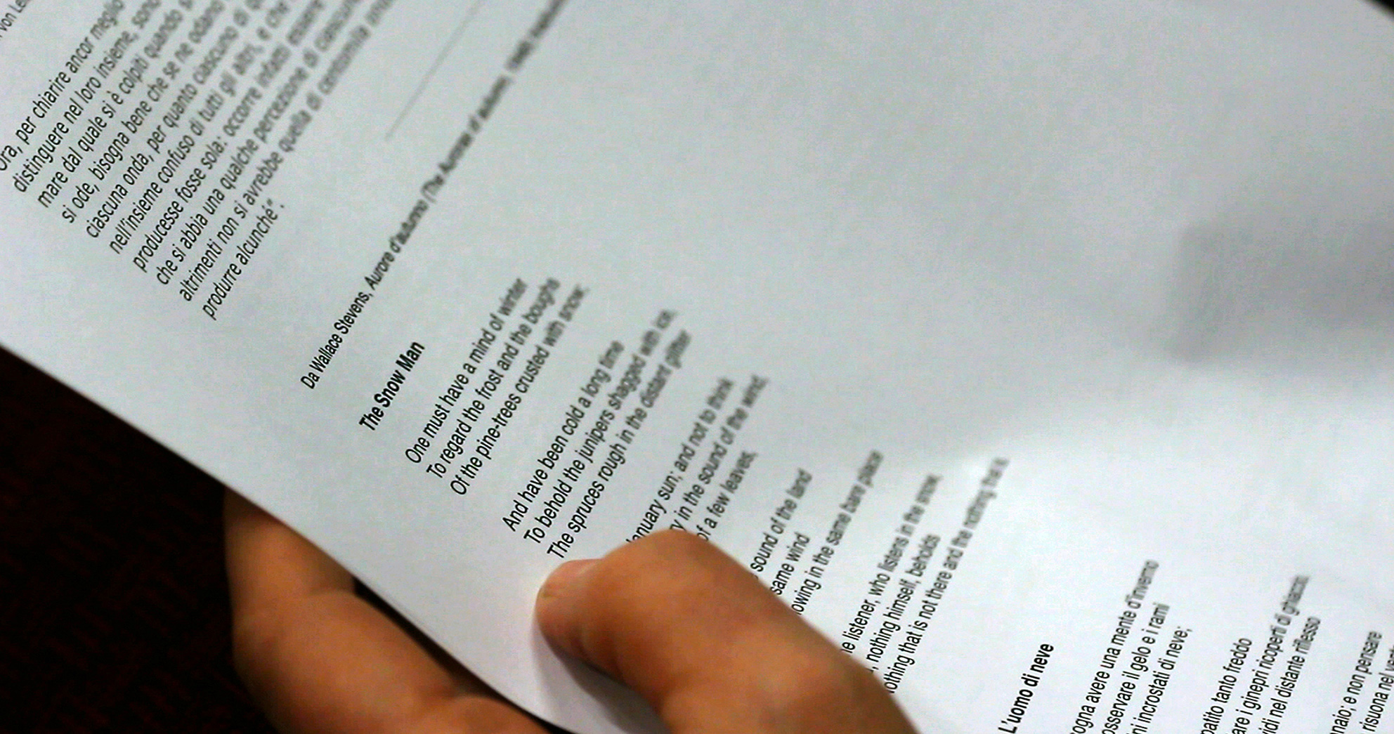 concretezza e simbolo, luogo d’origine e luogo mitico, casa e lingua; andirivieni tra essere e posto, spostarsi, trasporre, tradurre, leggere, interpretare, impersonare; trauma/luce, conversione e sviamento di Paolo; debito e sbilanciamento, il rimosso, il sostituto, l’alias.